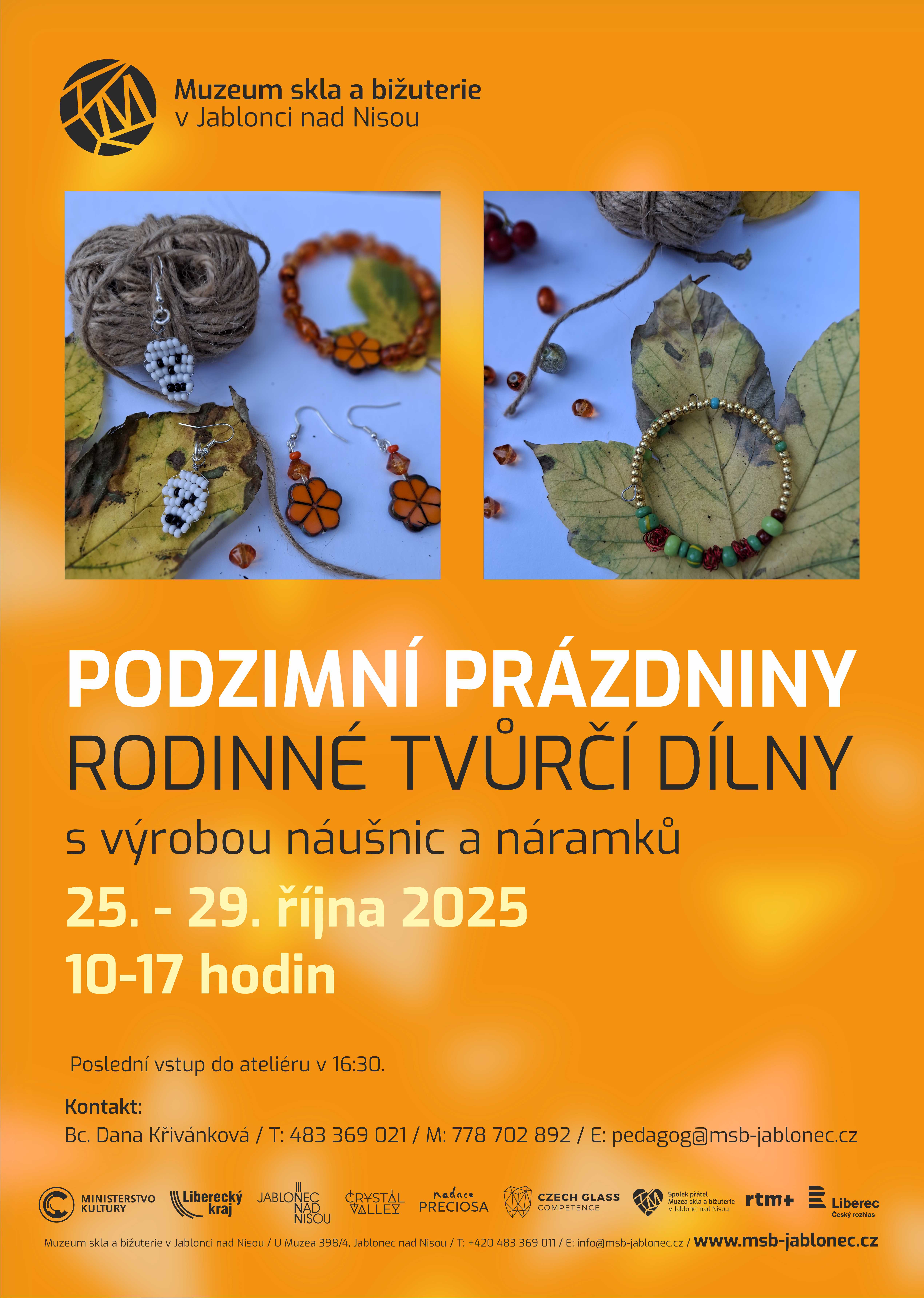 Podzim se vybarvil a my zveme rodiny s dětmi na tradiční podzimní prázdninové tvoření. Letos dílna nabídne výrobu šperků v jasných barvách listí, dýní a jeřabin.