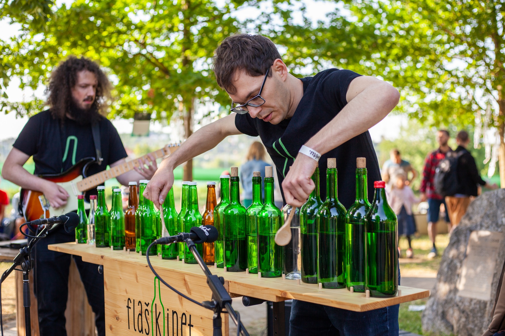 Paralelně se od 17 hodin rozběhne hudební program na Letní scéně Eurocentra. Ten odstartuje oblíbená bejby punková kapela Kašpárek v rohlíku, která pobaví malé i velké. V 18.30 se představí netradiční duo Flaškinet se svou hudbou na skleněné lahve, večer pak vyvrcholí koncertem velkolepého Big´O´ Bandu ve 20 hodin a následnou audiovizuální světelnou show _STROY studia ve 22 hodin.