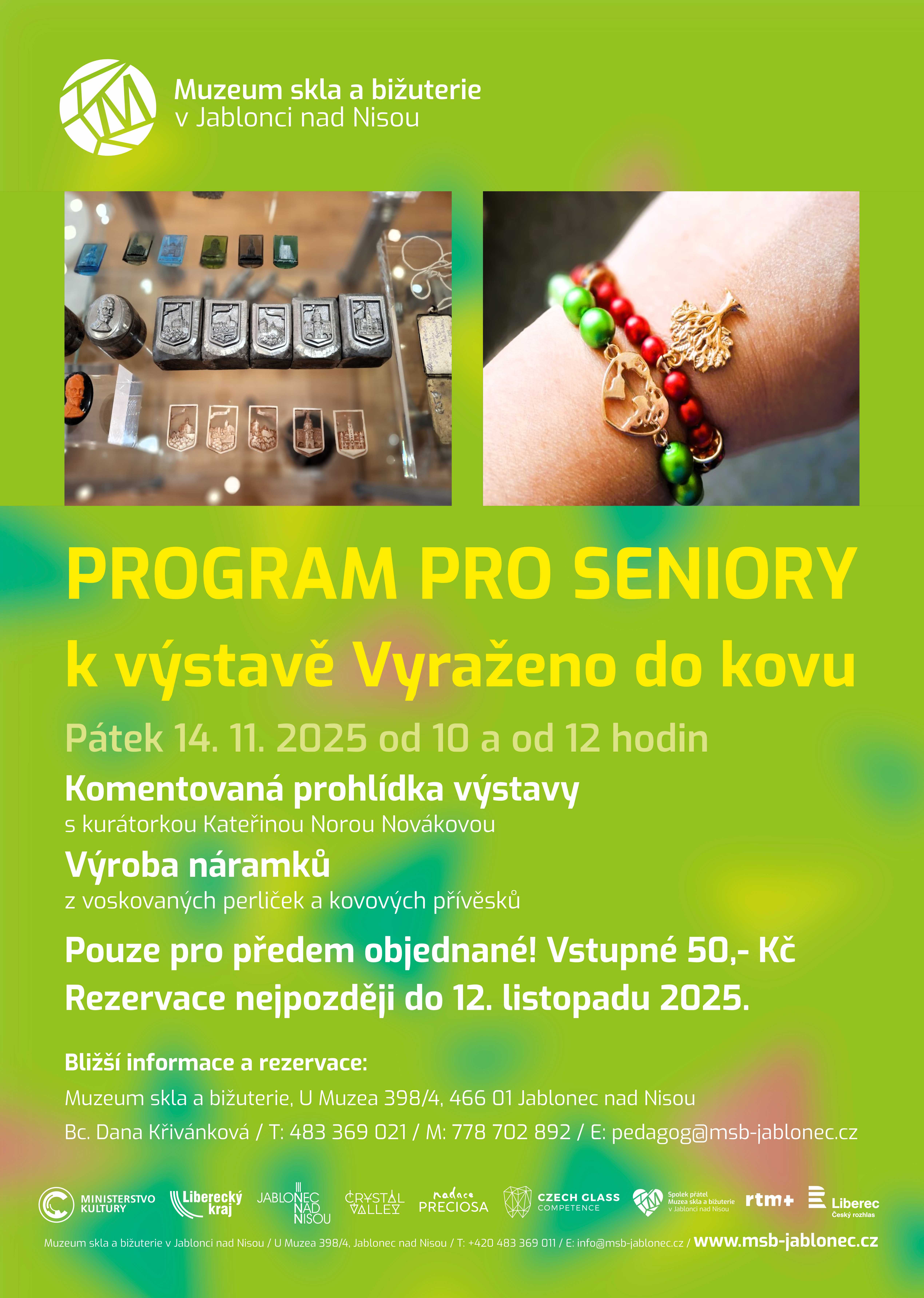 Muzeum připravilo pro seniory mimořádný program, tentokrát k nové výstavě Vyraženo do kovu. Výstava se zabývá historií regionální kovovýroby, která byla od 19. století klíčovou součástí jabloneckého bižuterního a galanterního průmyslu.