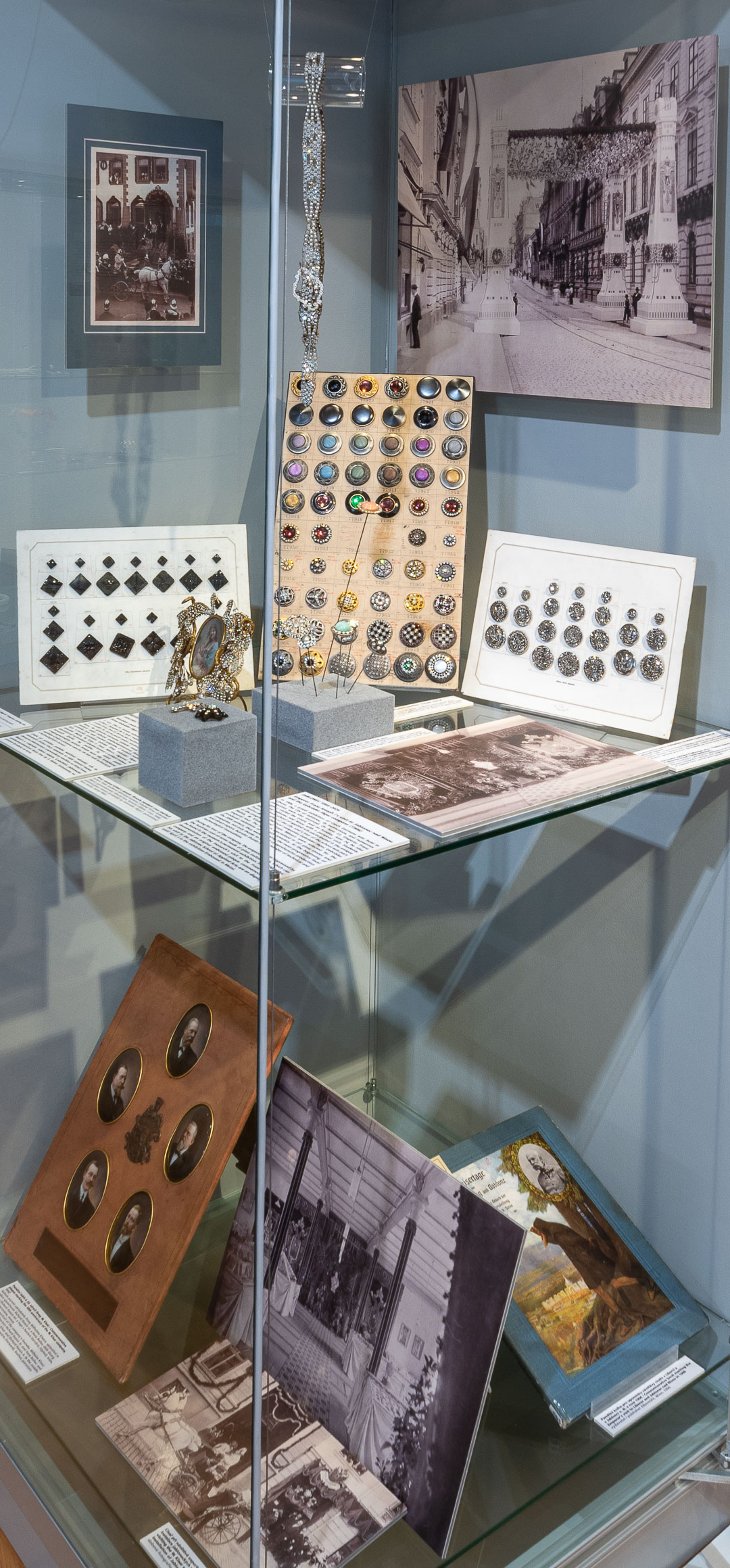 In 1906, a grand exhibition of Czech Germans was held in Liberec. The city of Jablonec, its institutions, and numerous companies were also involved. On June 22, Emperor Franz Joseph I visited the event, and on Sunday, June 24, he also honoured Jablonec nad Nisou with a personal visit. Students from the local school of applied arts participated in the unique festive decoration of the city, and a tour of the school became part of the program. The local companies Gebrüder Jäger, Gebrüder Mahla, W. Klaar, and Franz Mänert were selected for the imperial tour. The Jägers specialized in cut glass stones and produced imitations of luxury jewellery. At the beginning of the 20th century, they were among the most progressive local companies, not only thanks to their comprehensive production and direct export, but also thanks to a number of technical and technological innovations.