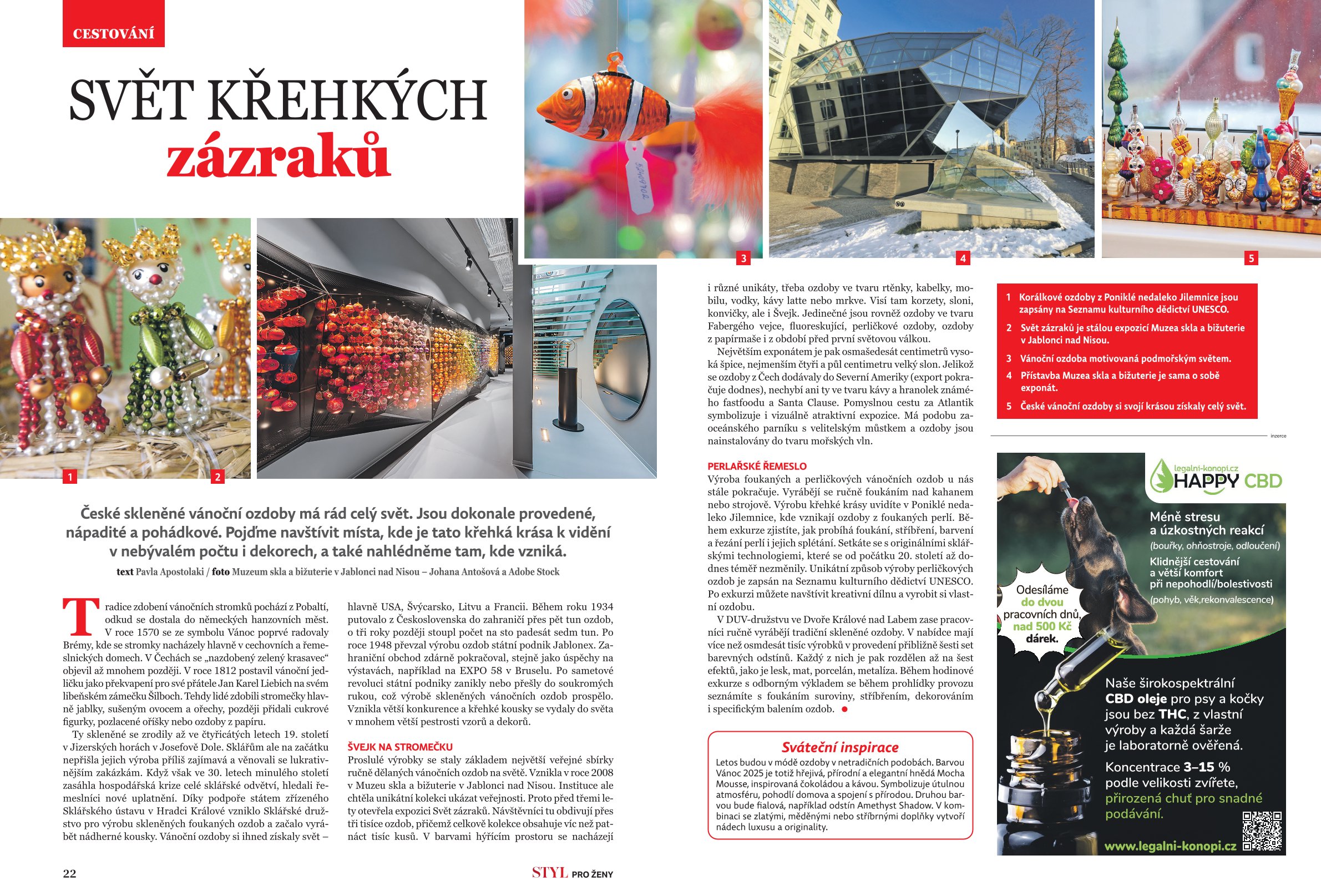 Přečtěte si článek o českých skleněných vánočních ozdobách, který vyšel v příloze Styl pro ženy deníku Právo (9. 12. 2025).